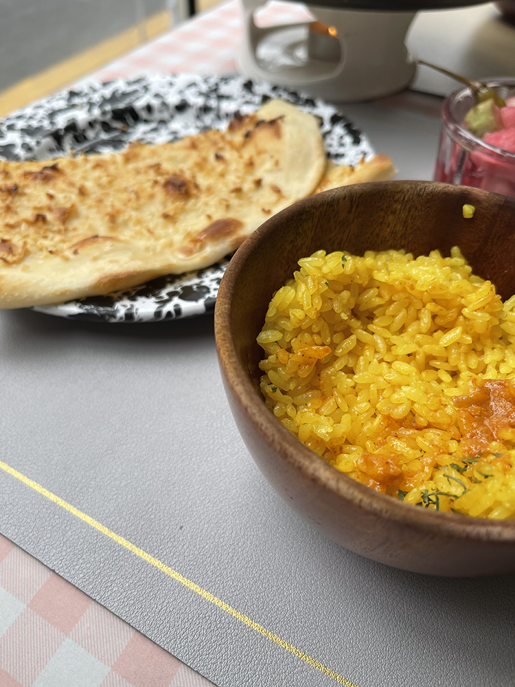 인딕슬로우에서는 정통 인도 요리를 현대적인 방식으로 풀어냈는데, 다양한 메뉴 중에서도 커리와 난이 단연 압도적으로 훌륭하더라고요. 메뉴판을 살펴보니 베지터블 반달루, 프라운 아보카도 사그 같은 커리 메뉴들이 돋보였고, 주말에는 세트메뉴가 괜찮아 보이더라고요. 점심 특선으로는 브런치 탈리 세트가 나쁘지 않은 선택이라 생각됩니다. 적당히 가성비도 챙기면서 배부르게 먹을 수 있는 구성이라 추천드립니다. 또 난 종류는 플레인을 선택해도 기본은 하겠지만, 저는 개인적으로 코코넛이 들어간 달달한 '카불리 난'을 한 번 드셔보길 추천드립니다. 그리고 저는 밥에 감동했는데요. 노오란 컬러에 강황밥은 커리와 정말 찰떡궁합이더라구요. 꼭 드셔보세요!!