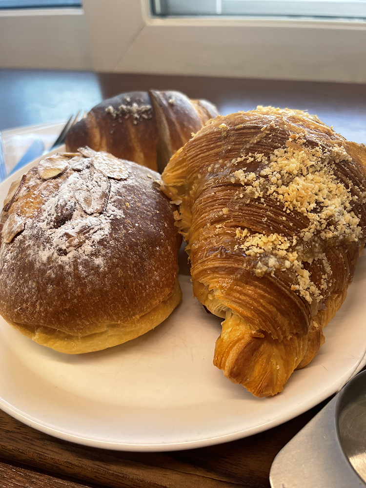 무이에서 개인적으로 가장 좋았던 순간은 따끈한 소금빵 한입을 딱 베어 문 순간이었죠. 말 그대로 입안 가득 버터의 풍미가 스며들면서 소금이 적당히 엣지가 되어주는 그 완벽한 조화, 이건 진짜 먹어봐야 알아요. 커스터드 크림번도 추천드리고 싶은데, 부드럽고 달달한 크림과 빵의 부드러운 텍스처가 너무 잘 어울렸어요. 또 팥빵은 기존의 달달한 맛을 넘어서 견과류와 시나몬이 더해져 새로운 경험을 선사했답니다. 다른 곳에서 잘 찾을 수 없는 특색 있는 조합들과 진짜 정성 들여 구웠다는 느낌이 강하게 들었어요. 빵을 앉은 자리에서 4-5개 먹었는데 좋은 재료 덕분인지 속도 편안하고 탄수화물을 먹었다는 죄책감 따위는 들지 않았답니다~!