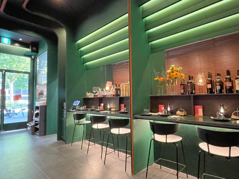 가게에 도착하자마자 초록색 외관 디자인이 눈에 확 들어왔어요. 이국적이면서도 약간은 핫한 카페같은 느낌의 외관이었습니다. 내부에 발을 들이자마자 고급바 같은 느낌의 인테리어가 시선을 끌었습니다. 모던하고 깔끔한 느낌이 제 취향에는 딱 맞았습니다. 좌석 간 거리도 넉넉해서 대화하기도 편하고, 편안한 마음으로 식사에 집중할 수 있는 좌석 배치였습니다. 오픈형 화덕 오븐이 있어 피자가 구워지는 모습을 직접 볼 수 있었는데, 덕분에 요리에 대한 기대감이 팍팍 올라갔습니다.