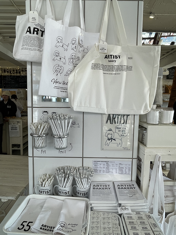 런던 베이글뮤지엄답게 디자인 굿즈들도 진열돼 있어서 식사 외에도 눈이 즐거웠어요. 빵을 만드는 작업이 약간 오픈형 주방으로 보여서 하나하나 정성스럽게 굽는 모습도 볼 수 있었답니다. 구매 후에는 포장을 기다리며 이곳저곳 내부를 구경할 수 있었는데, 직원분들이 고객 대기시간 동안 정성껏 포장해 주는 모습도 인상 깊었어요. 따뜻한 차 한 잔 서비스하며 고객을 배려하는 것도 진짜 훈훈했어요!