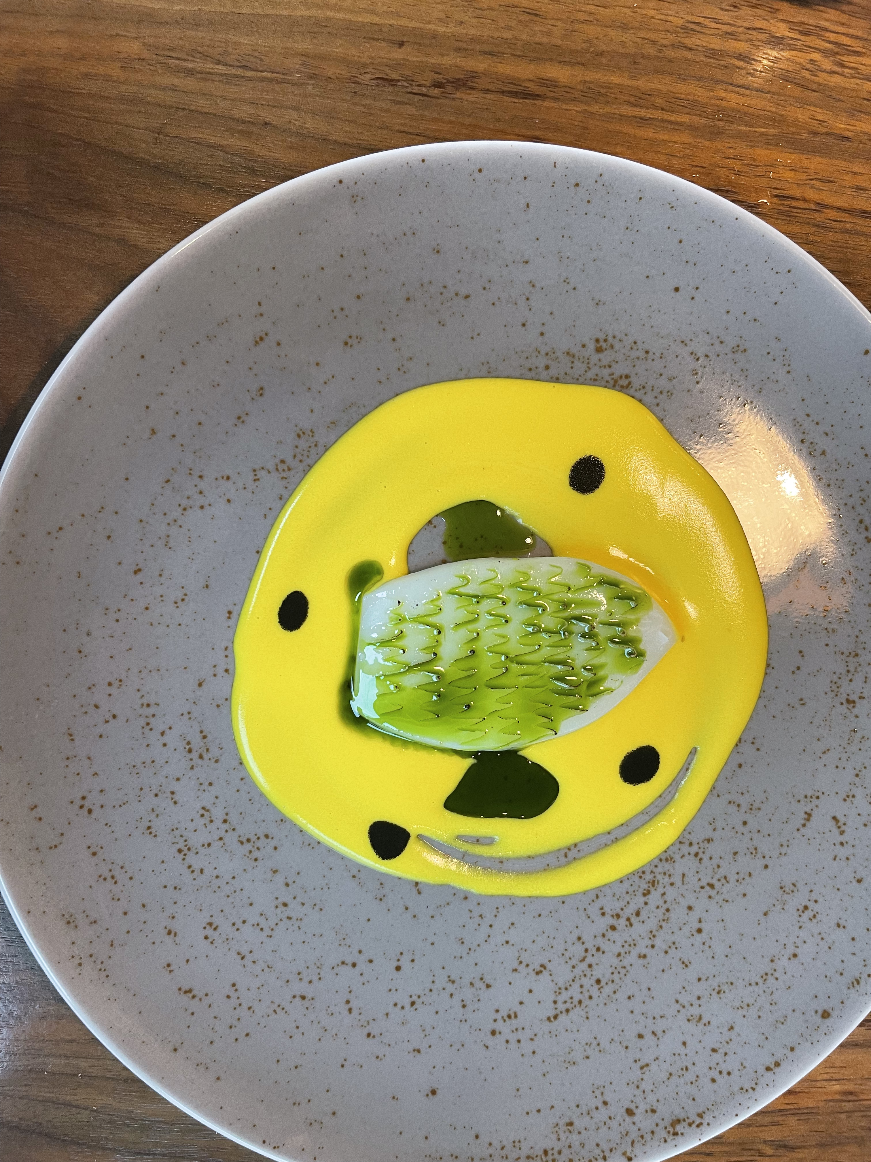저는 개인적으로 모든 요리에 감동을 받았지만, 이날 코스의 메인은 제주 성게 요리와 금태 요리였어요. 고기보다 생선을 더 좋아하기도 하지만 흔히 아는 해산물 요리의 맛이 아닌 재료 본연의 맛을 살리면서도 소스와 함께 어울어지는 풍미가 세련된 느낌을 받았습니다. 또한 디쉬의 디자인이 너무 완성도 있어서 정말 놀랐어요. 예술 작품을 대하는 듯한 느낌을 받을 정도였습니다.